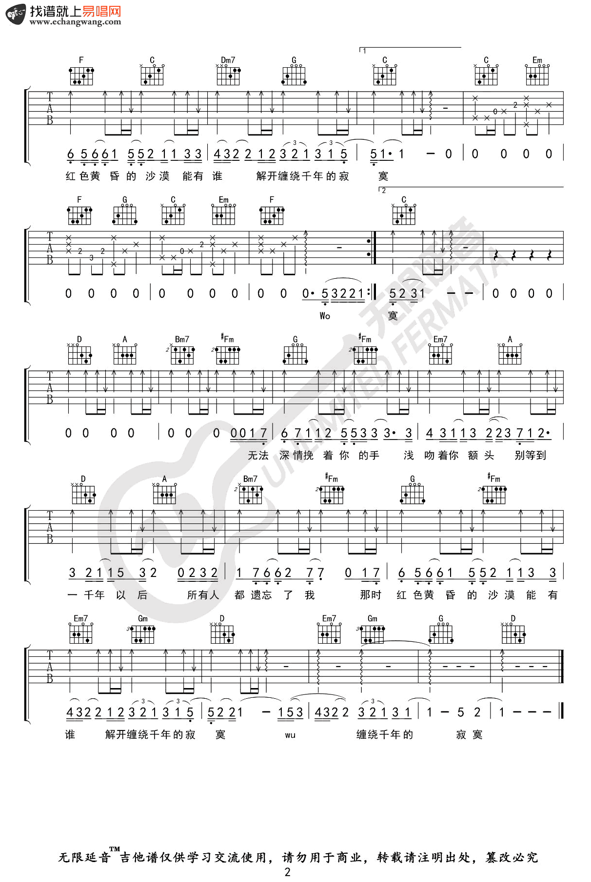 当前位置:琴谱网>吉他弹唱>一千年以后