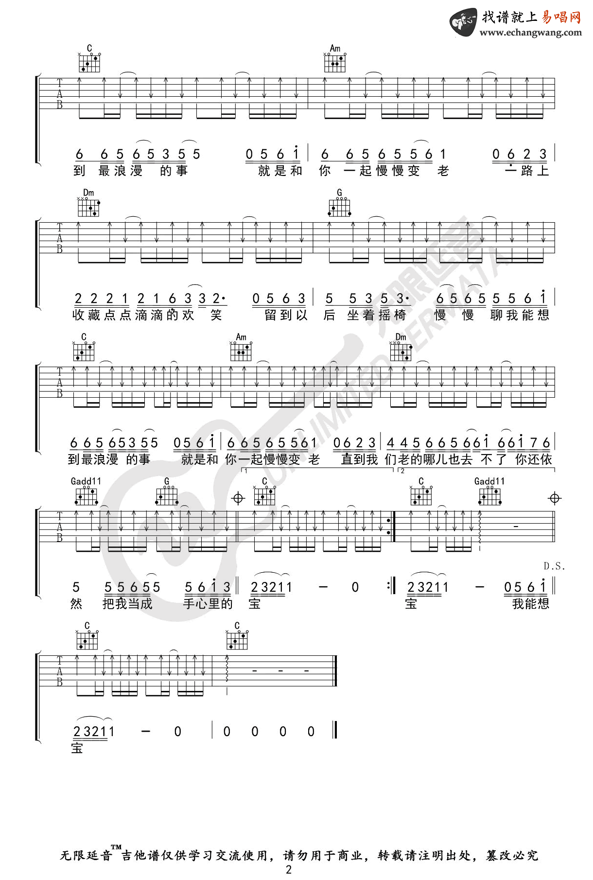 曲谱介绍: 最浪漫的事吉他谱,赵咏华演唱的一首经典老歌,见证了30年来各种幸福浪漫的时刻。最浪漫的事吉他弹唱谱,C调指法,两张图片六线谱。琴谱网更新上传,无限延音制谱分享。
