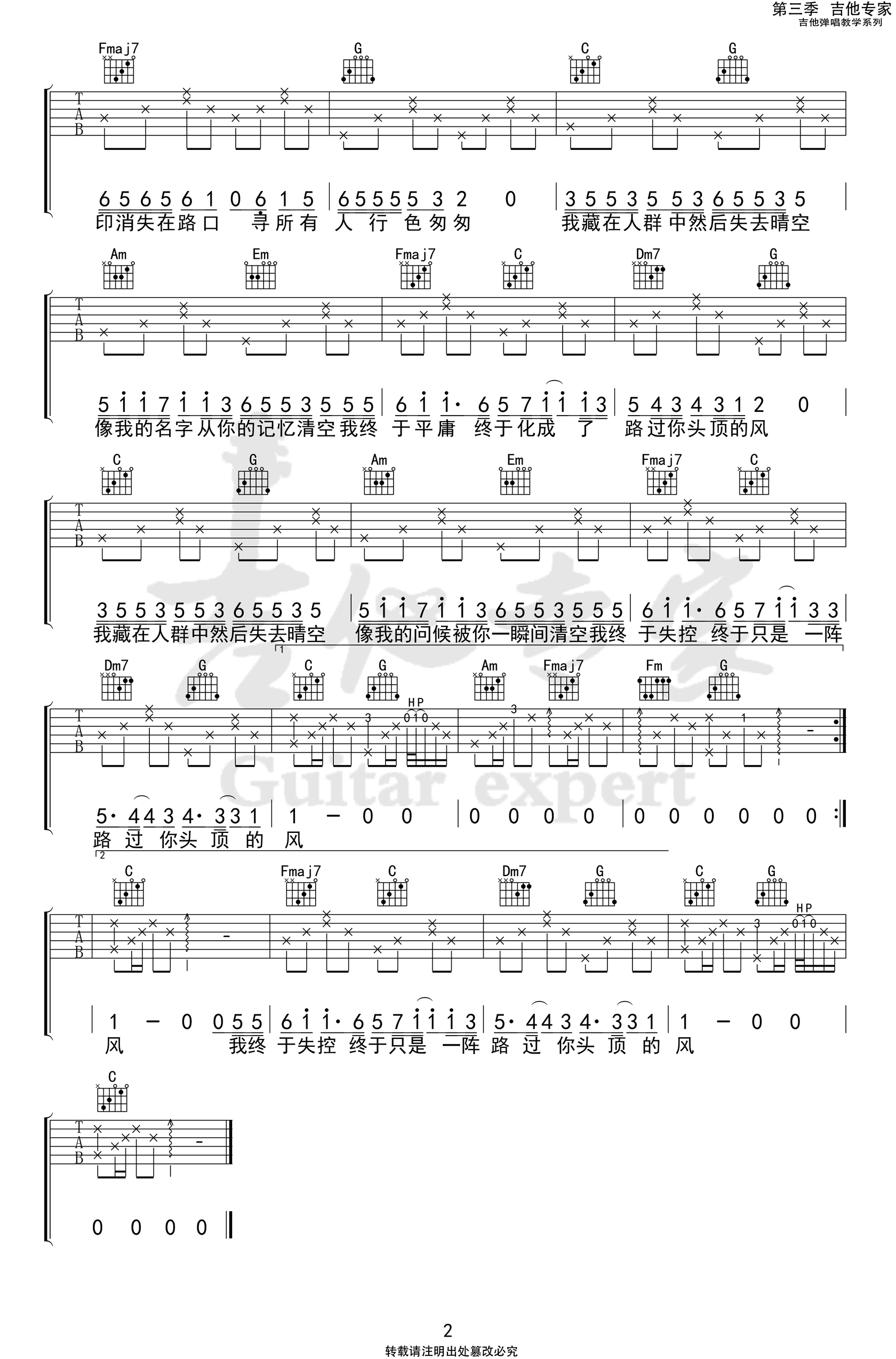 当前位置:琴谱网>吉他弹唱>你头顶的风