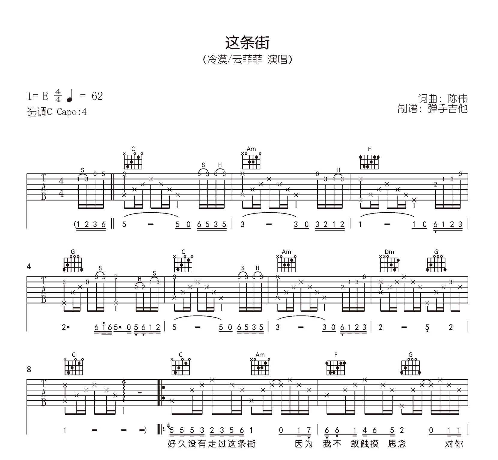 当前位置:琴谱网>吉他弹唱>这条街