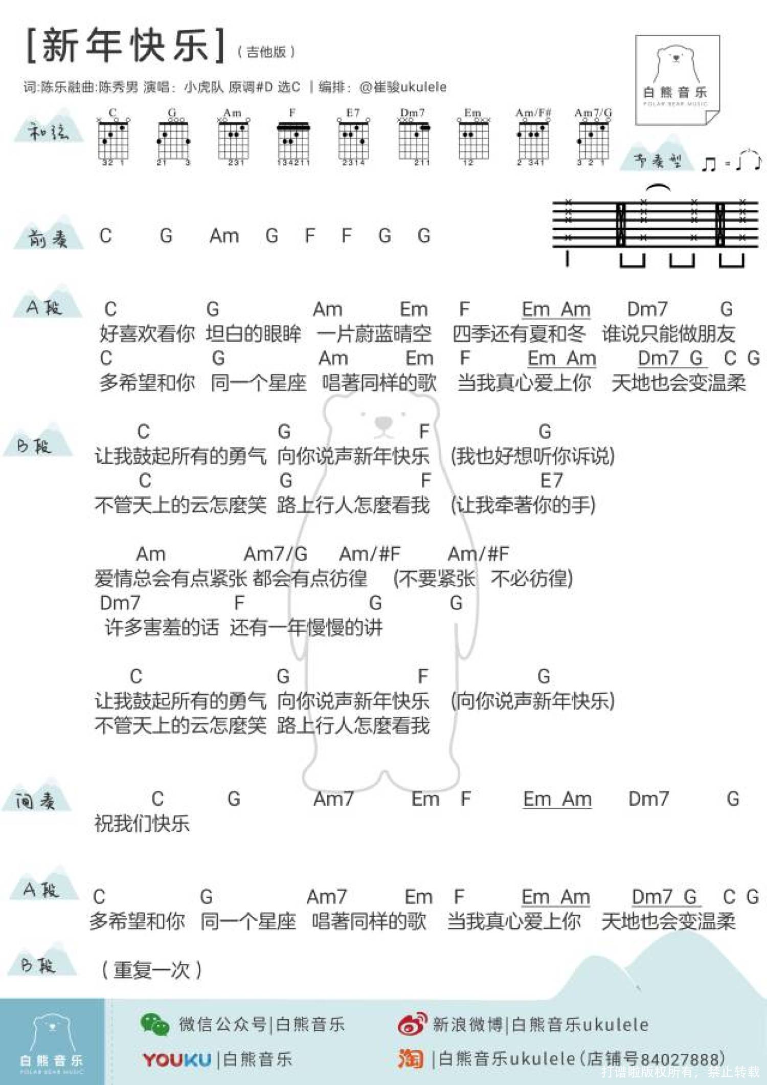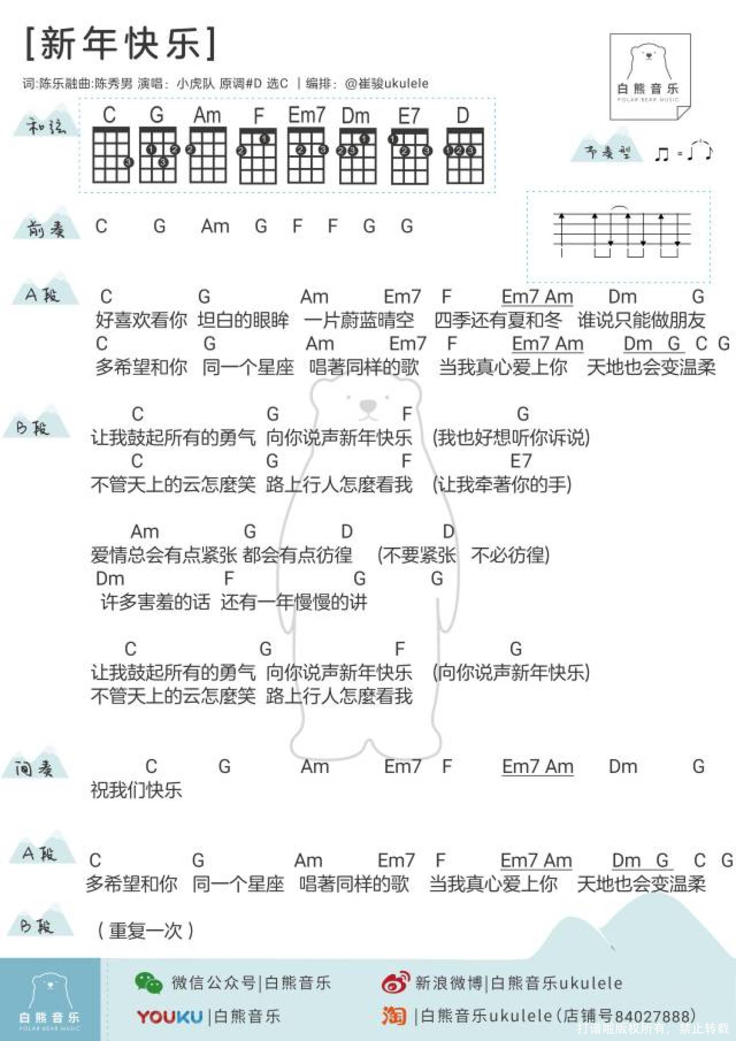 新年快乐尤克里里谱 - 白熊