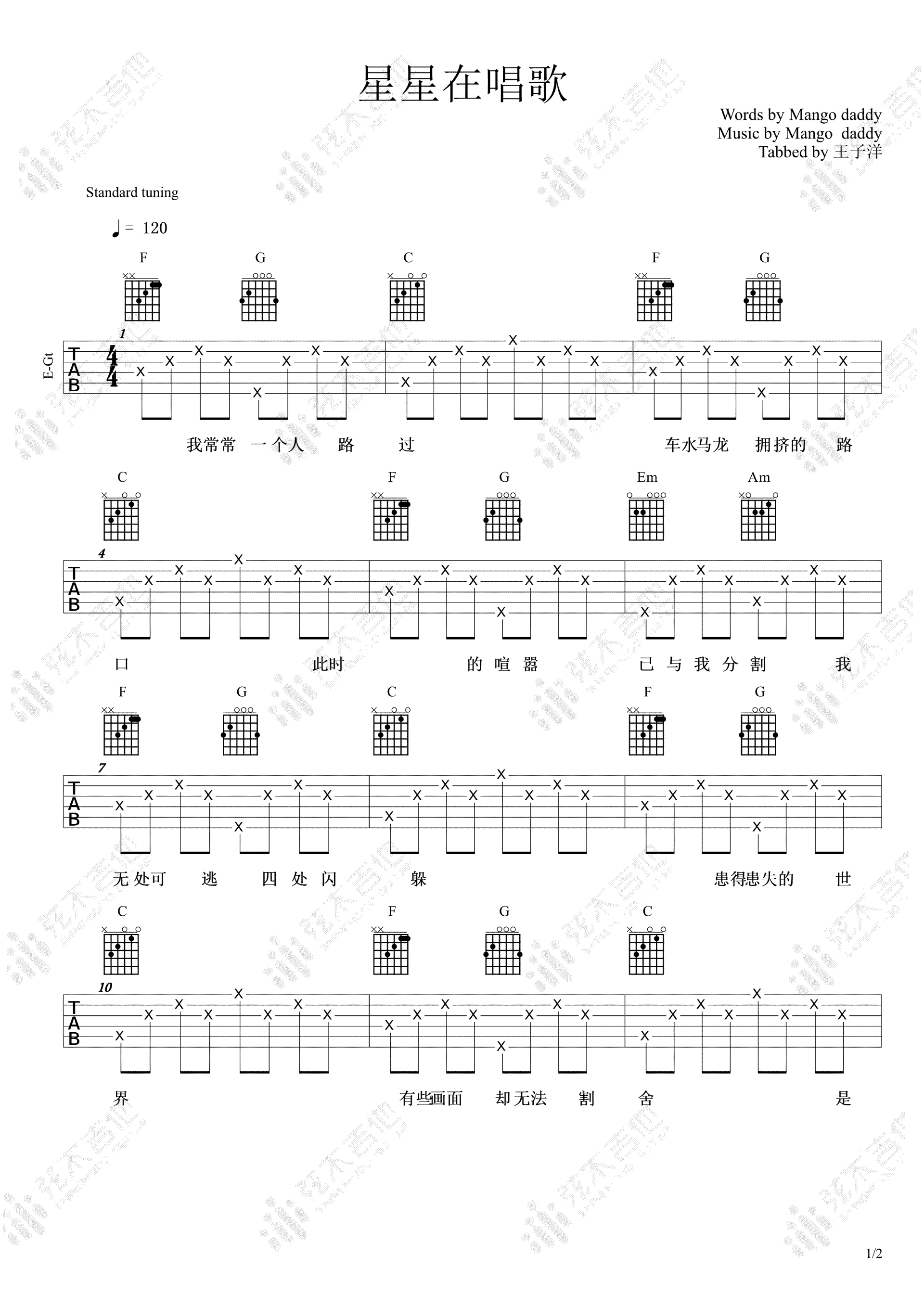 当前位置:琴谱网>吉他弹唱>星星在唱歌