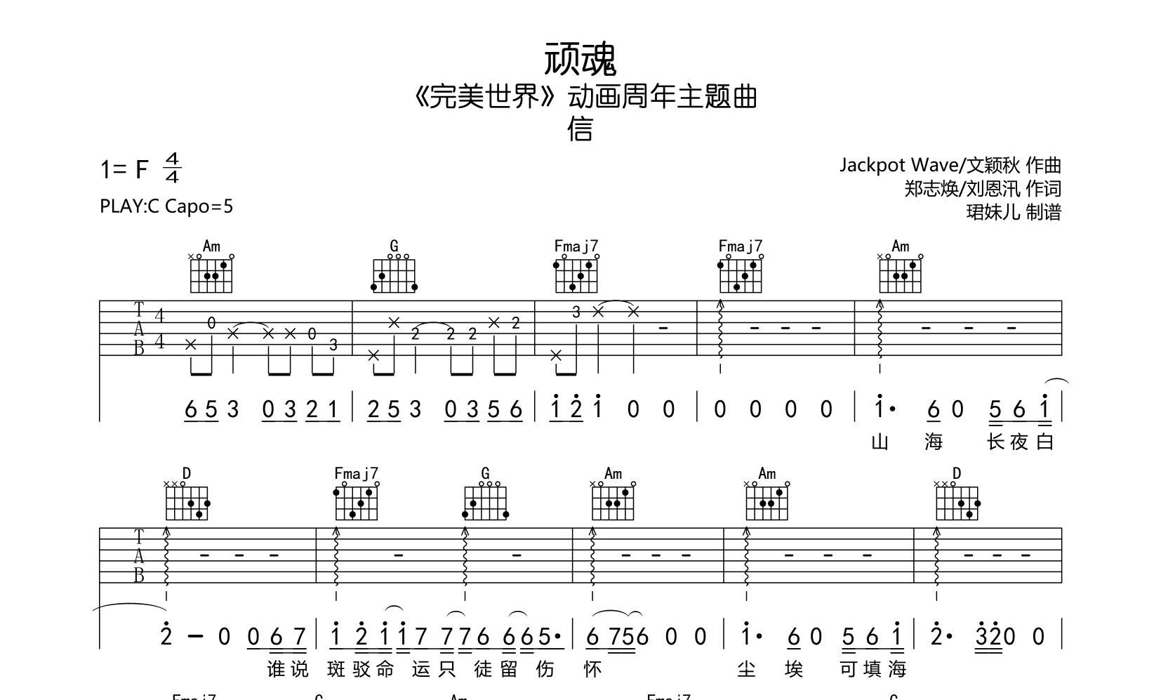 顽魂吉他谱 - 信 - C调吉他弹唱谱