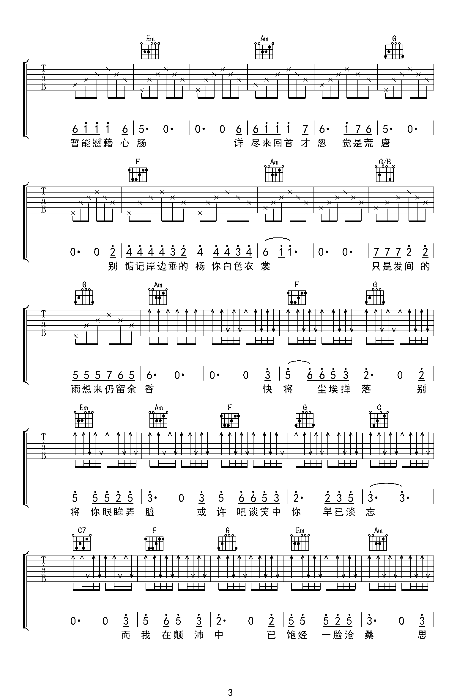 当前位置:琴谱网>吉他弹唱>余香