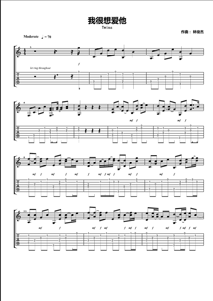 我很想爱他吉他谱 - Twins - 吉他独奏谱