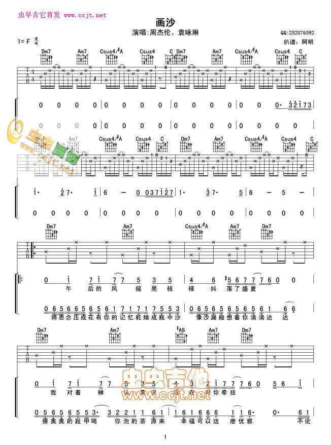 画沙吉他谱 - 周杰伦 - F调吉他弹唱谱