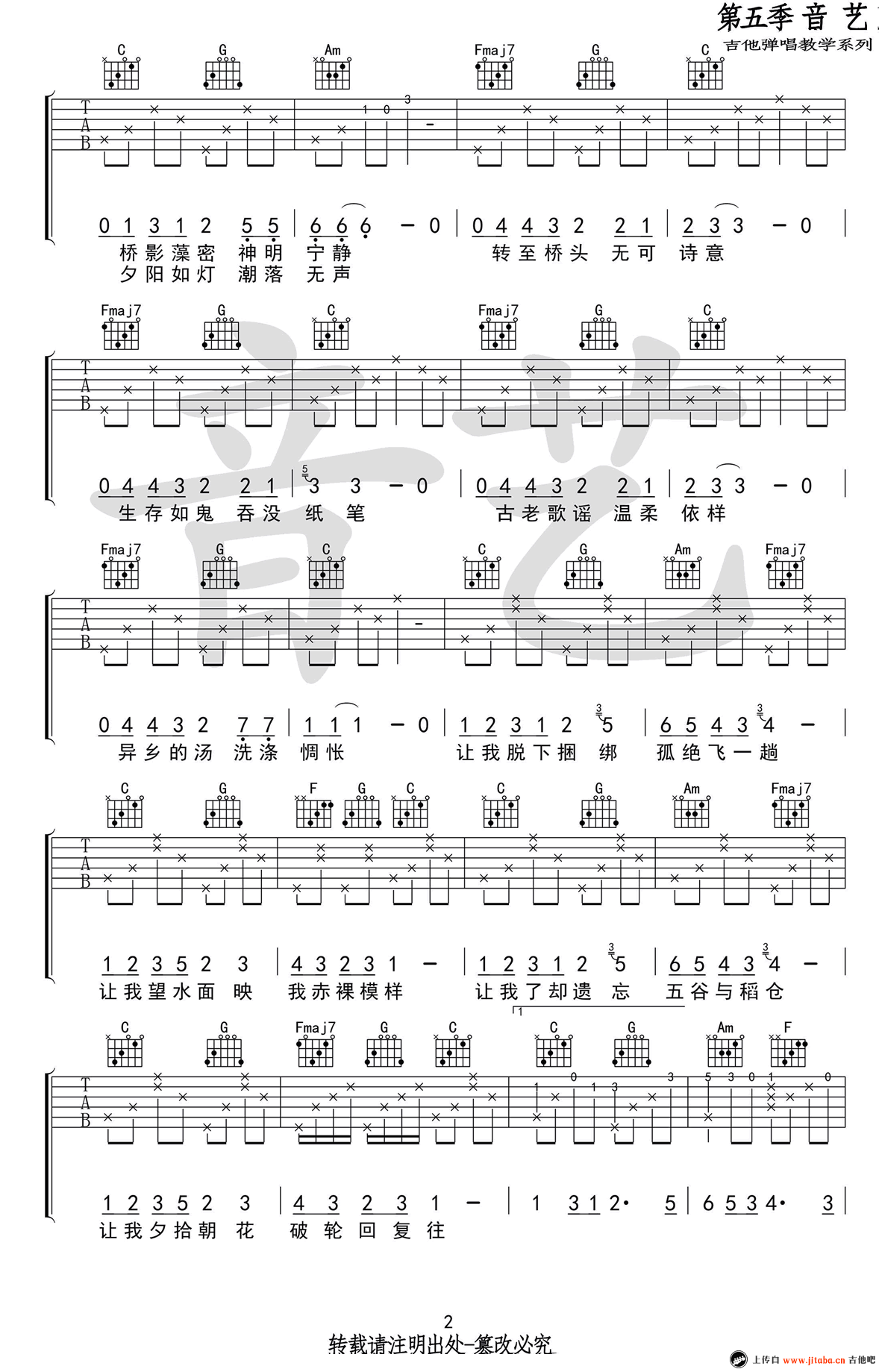 吉他弹唱C调来源:良好市民97 浏览2024-01-29 08:31发布图谱共2页