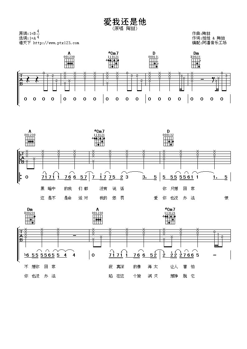 爱我还是他吉他谱 - 陶喆 - A调吉他弹唱谱