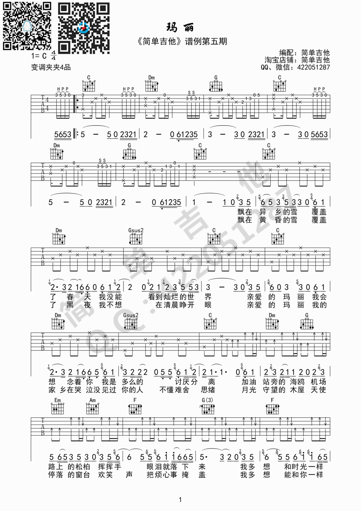 琴谱网为您精心推荐 玛丽 高清图谱