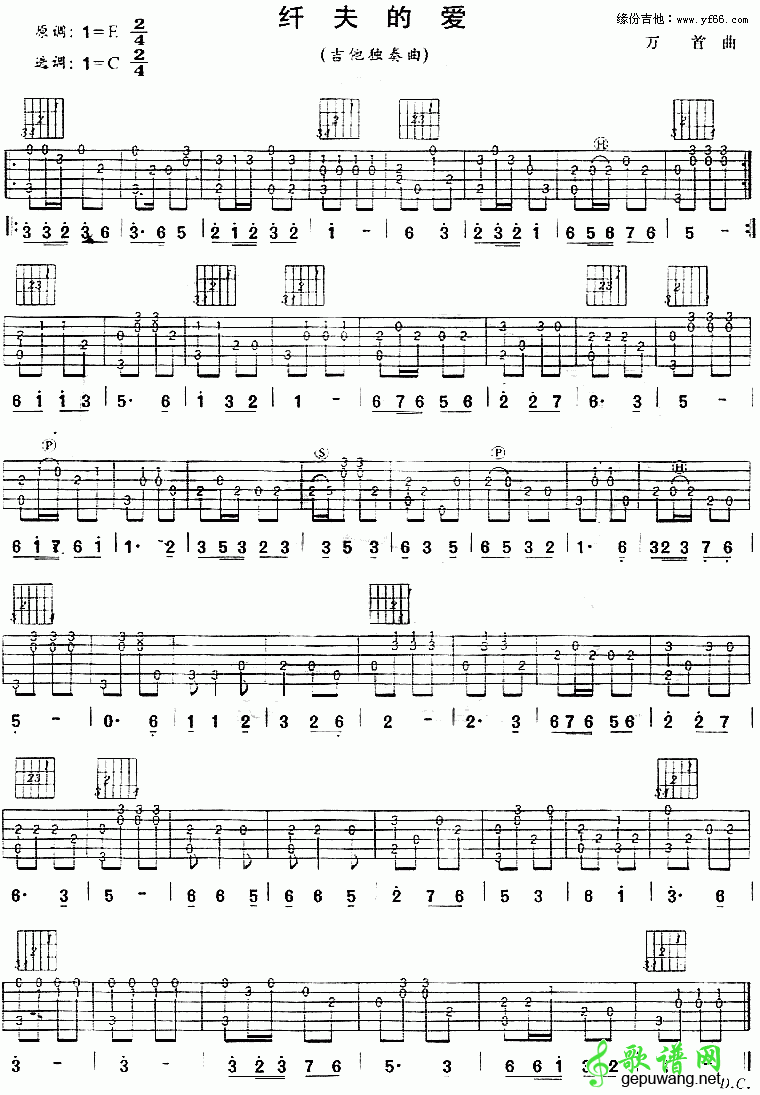 纤夫的爱吉他谱 - 于文华 - C调吉他独奏谱