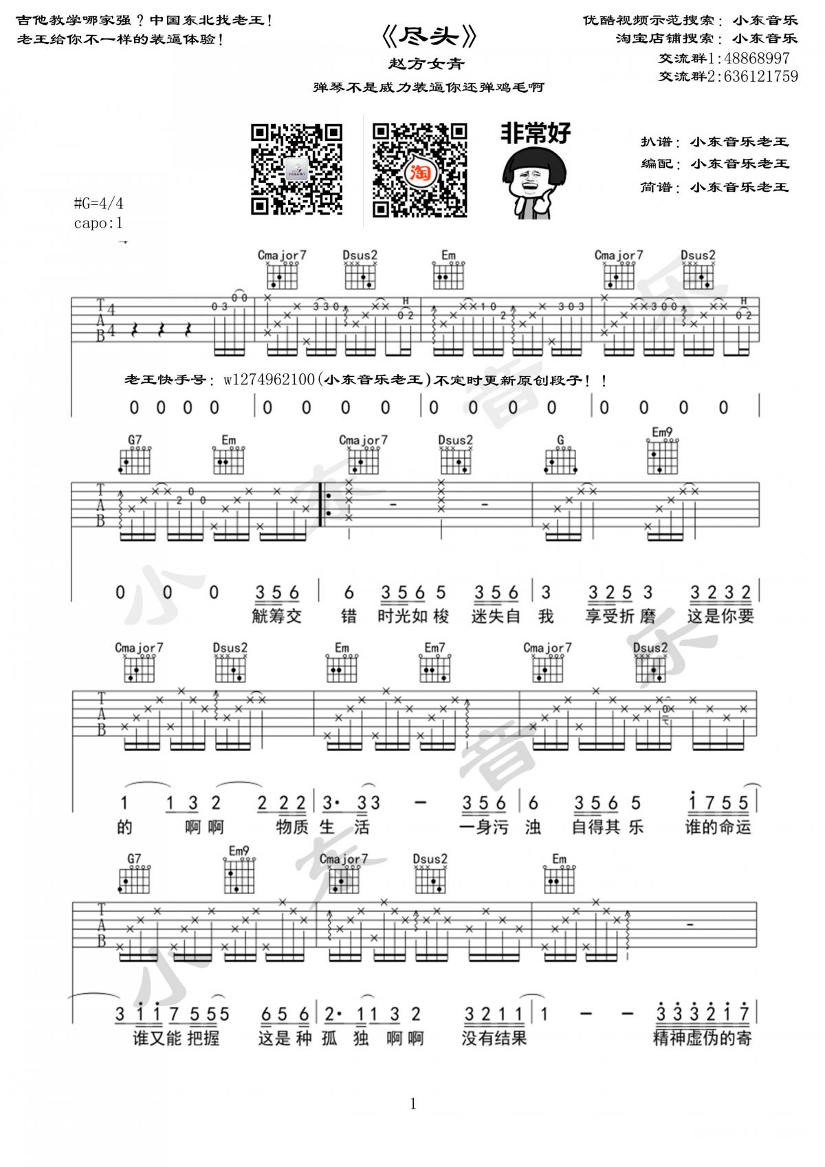 尽头_升G调吉他谱 - 尽头 - G调吉他弹唱谱