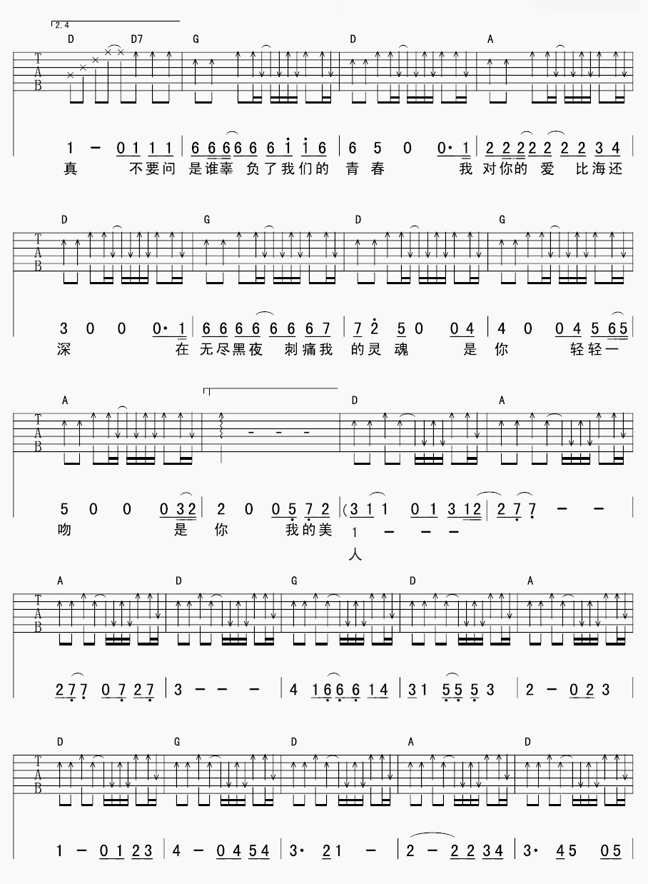 曲谱介绍: 美人吉他谱采用了D调指法,由延麟编配完成。除了这首谱以外,大雁吉他谱也非常不错,速度去围观一下吧!