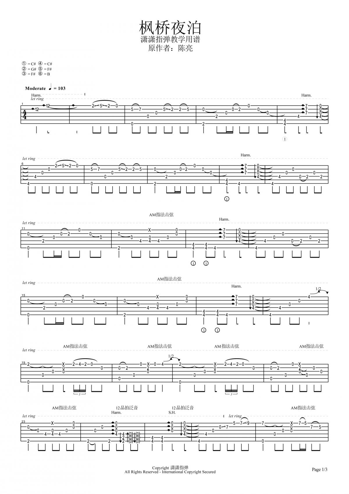 曲谱介绍: 陈亮《枫桥夜泊》吉他独奏谱,共有3张高清图谱。