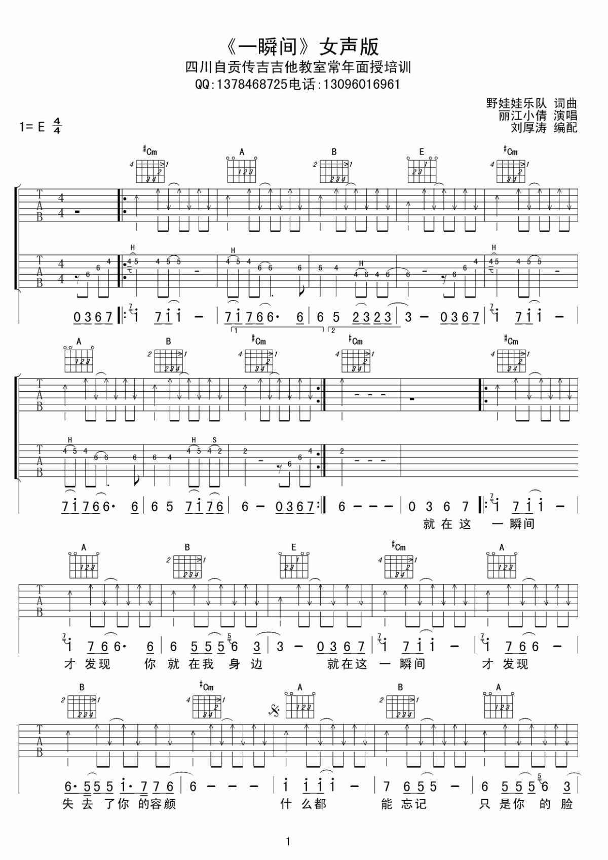 丽江小倩 一瞬间吉他谱 - 丽江小倩 - 吉他弹唱谱