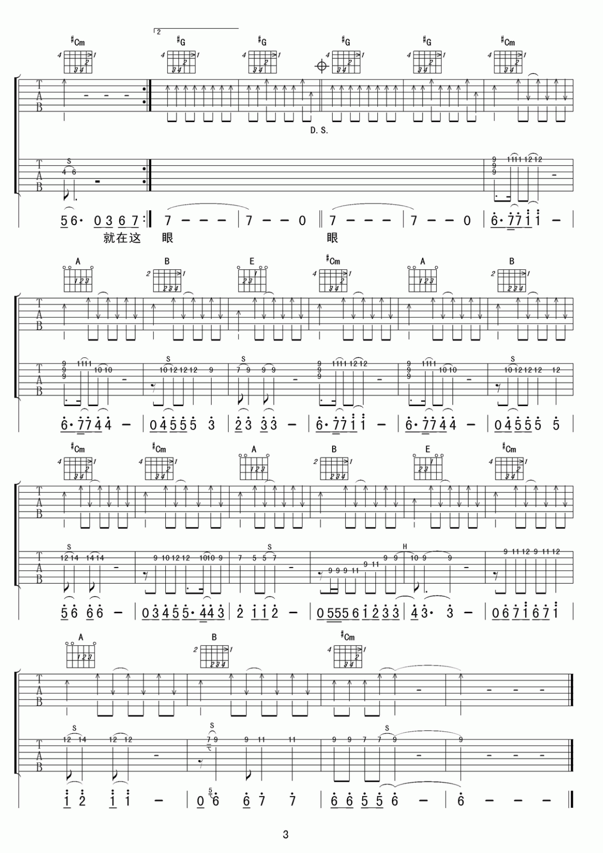 曲谱介绍: 丽江小倩《丽江小倩一瞬间》吉他弹唱谱,共有3张高清图谱。