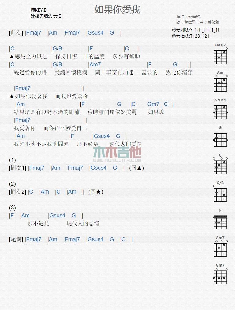 如果你爱我_吉他谱 - 如果你爱我 - 吉他弹唱谱