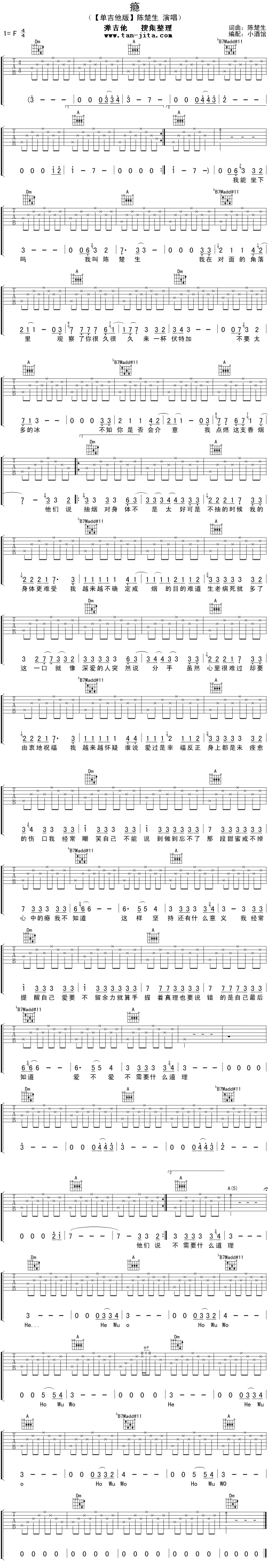 瘾吉他谱 - 陈楚生 - F调吉他弹唱谱