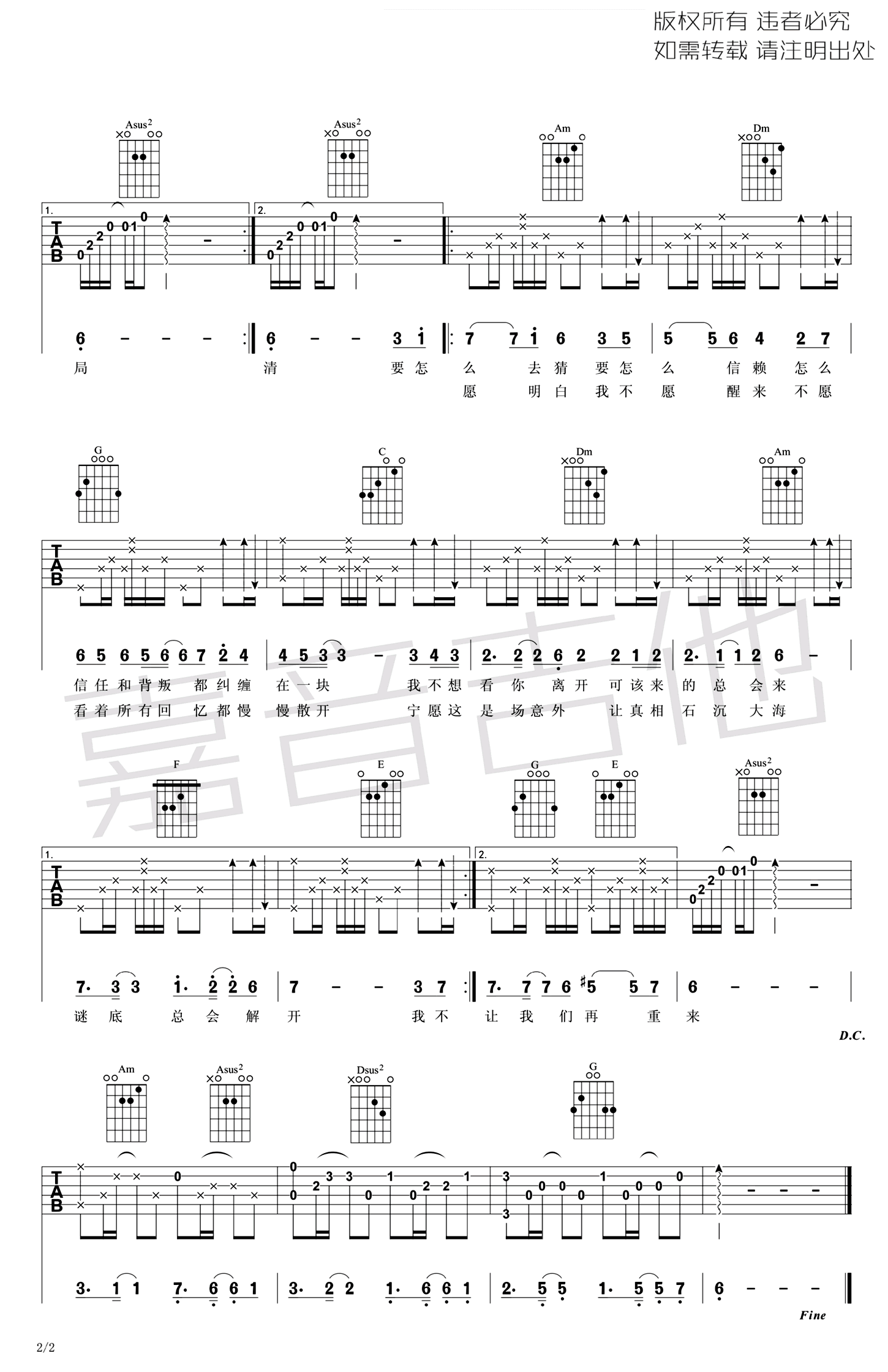 吉他弹唱C调来源:嘉音吉他222 浏览2024-01-29 09:47发布图谱共2页