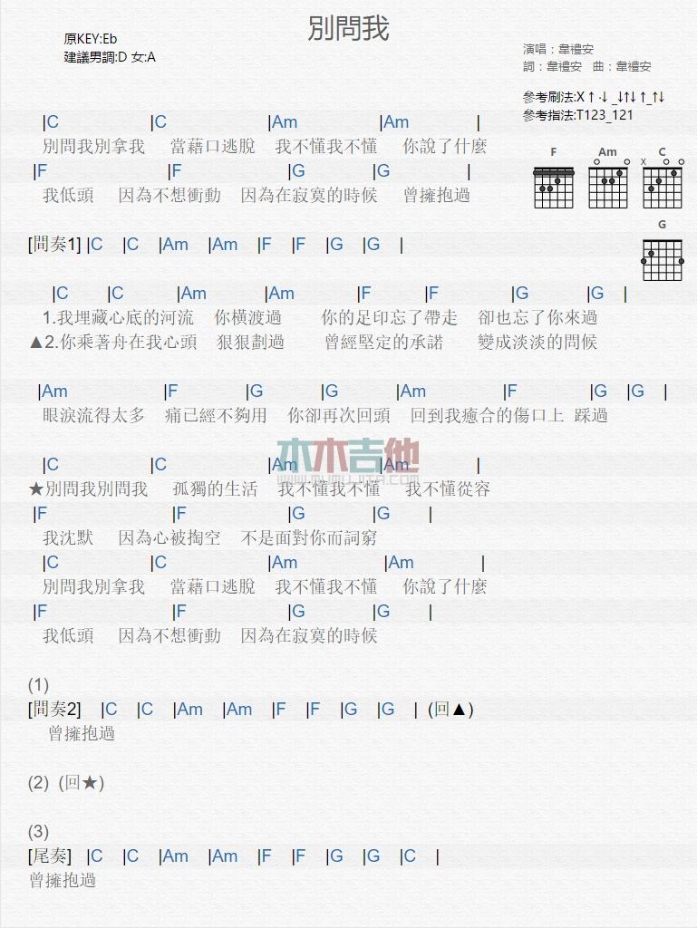 别问我_吉他谱 - 别问我 - 吉他弹唱谱