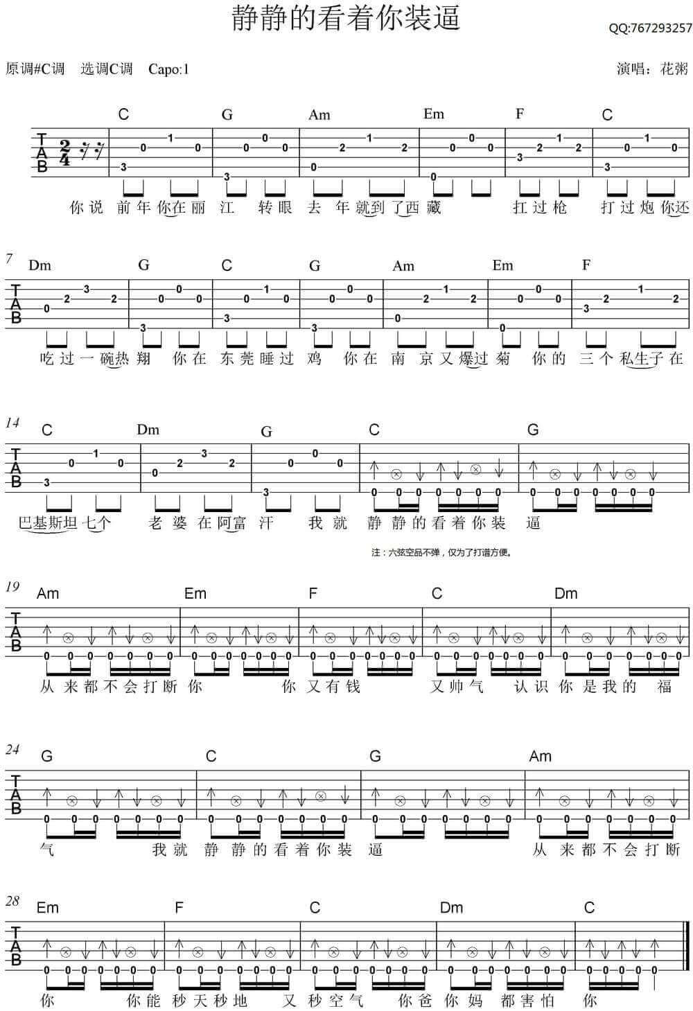 静静的看着你装b吉他谱 - 花粥 - C调吉他弹唱谱