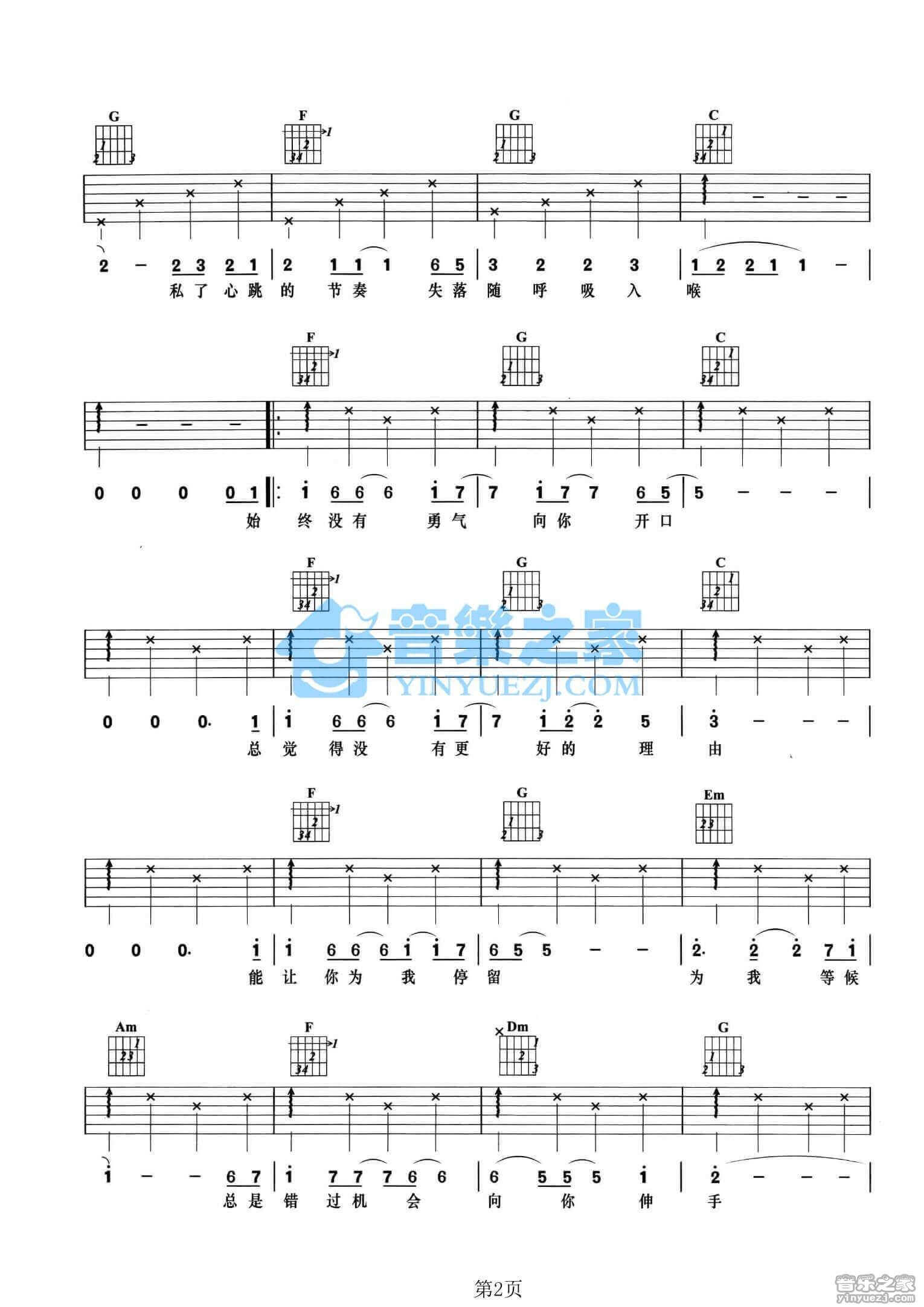 曲谱介绍: 错过吉他谱采用了C调指法,由音乐之家编配完成。王铮亮的声音还是一如既往地深情,他的声音能够把听众都带进入到他的音乐环境之中,将他的情绪传递给大家。听说,有魅力的帅哥美的都在悄悄练这首无望吉他谱,小伙伴们也快练起来吧~