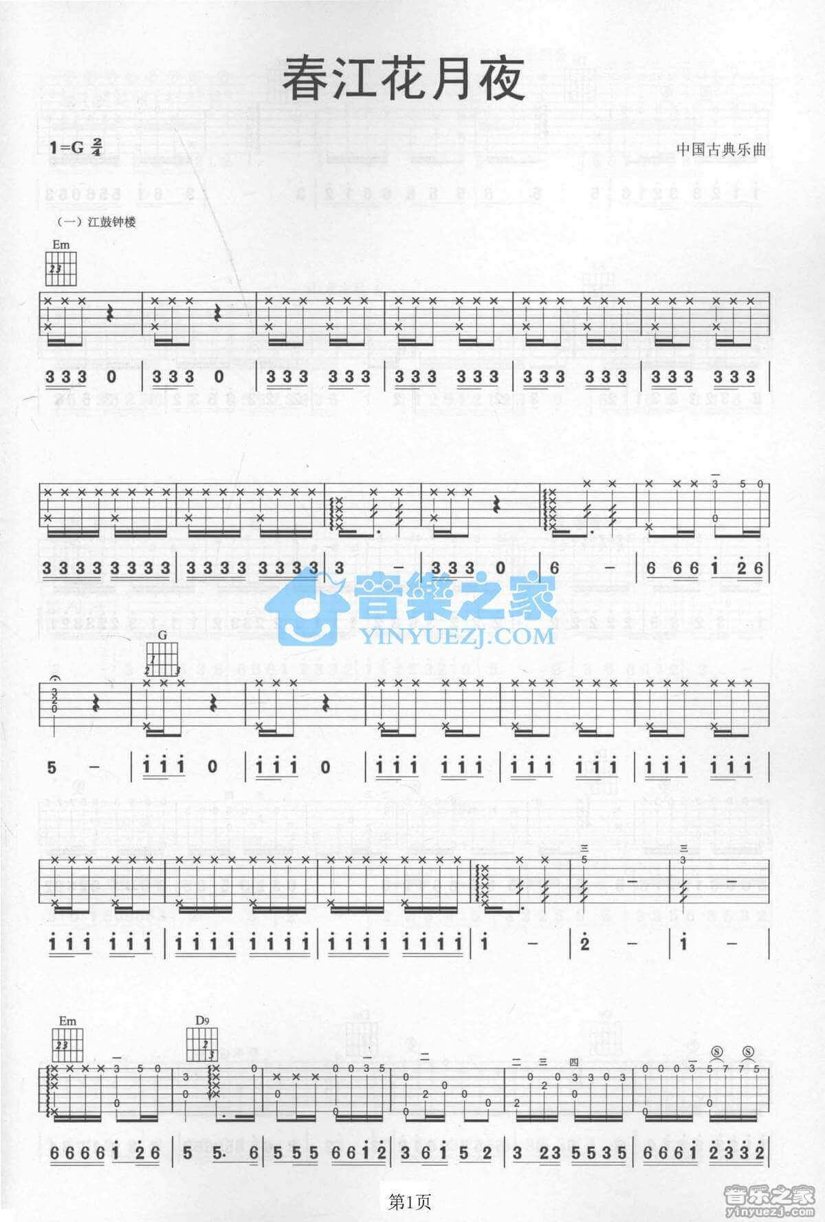 当前位置:琴谱网>吉他独奏>春江花月夜
