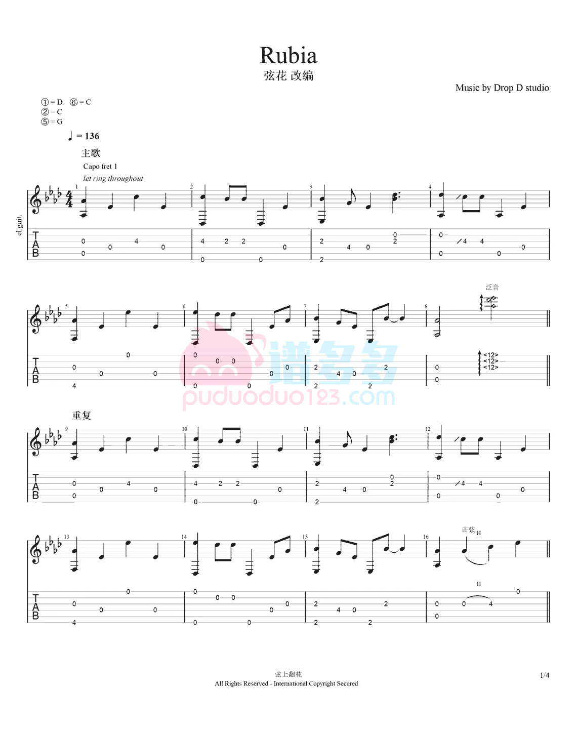 曲谱介绍: 周深《Rubia》吉他独奏谱,共有5张高清图谱。