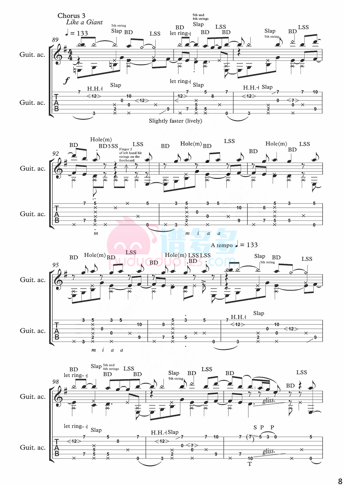 曲谱介绍: 迈克尔·杰克逊《BeatIt》吉他独奏谱,共有10张高清图谱。