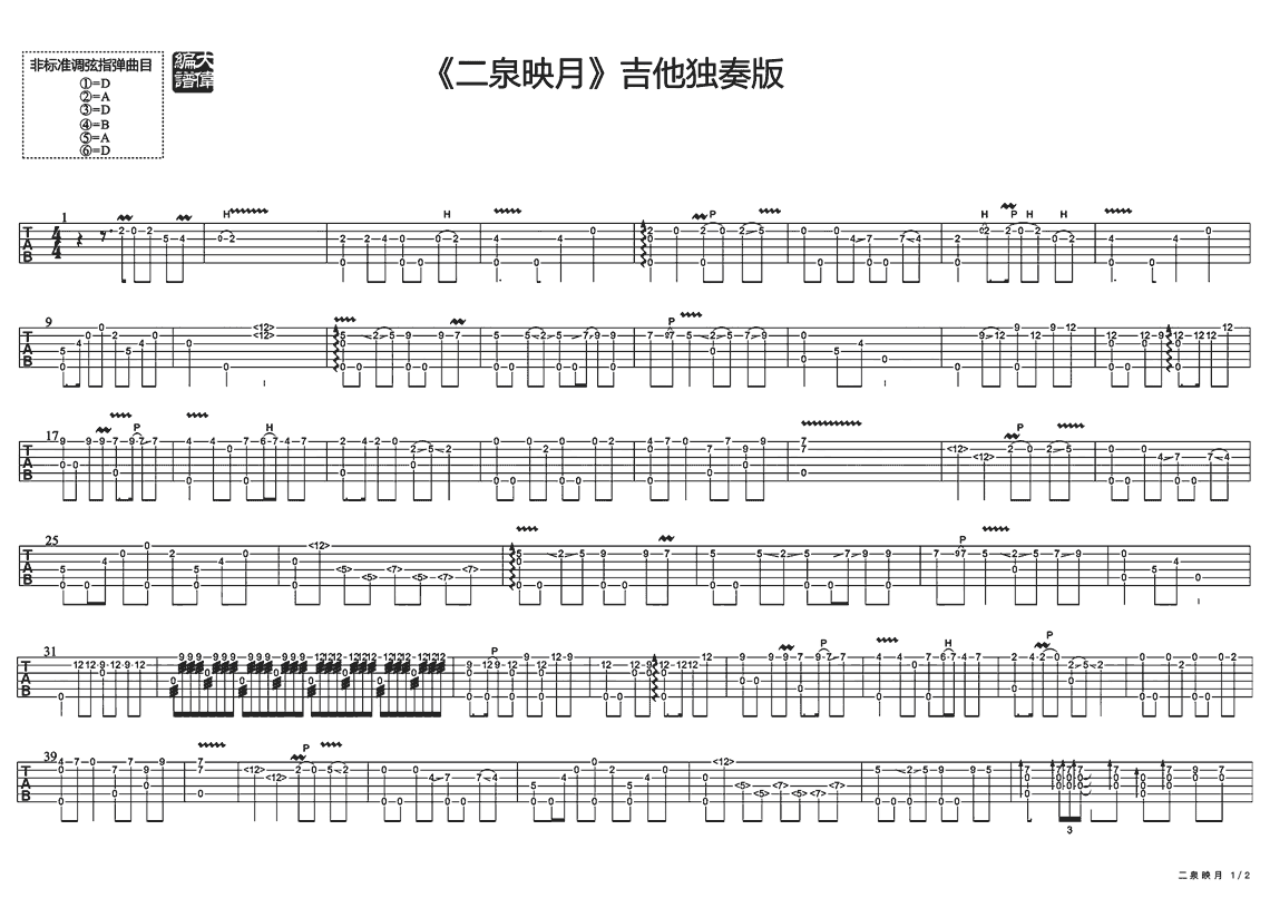 曲谱介绍: 《二泉映月》吉他独奏谱,共有3张高清图谱。