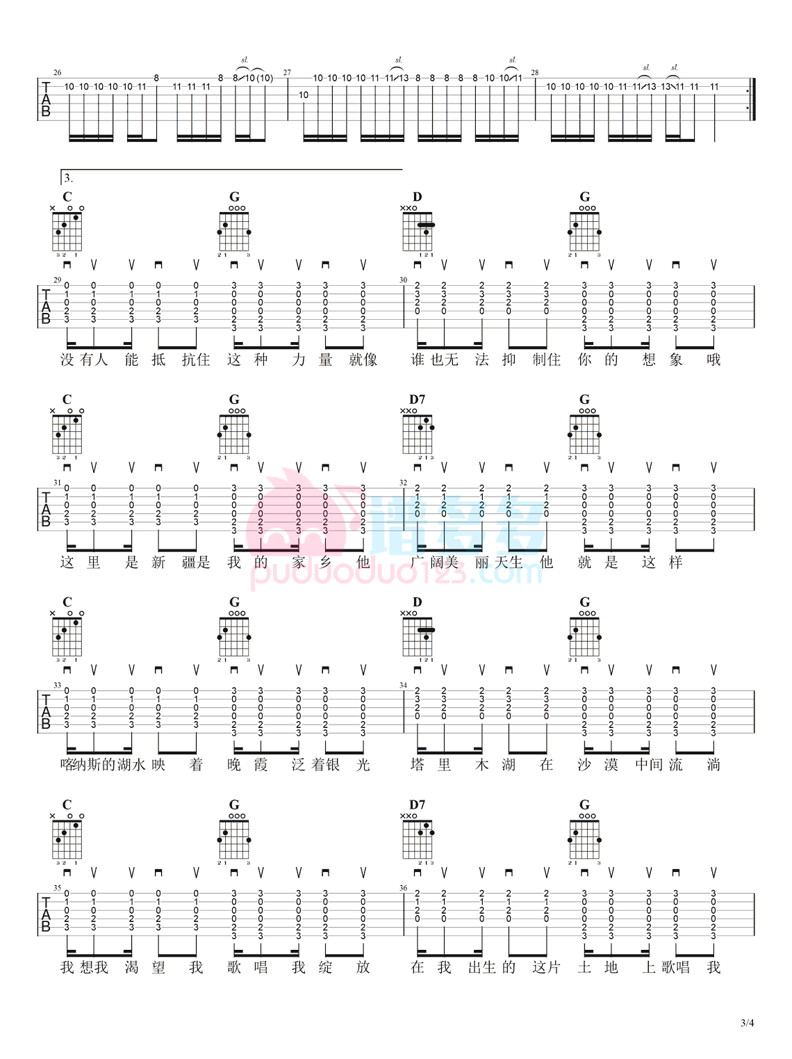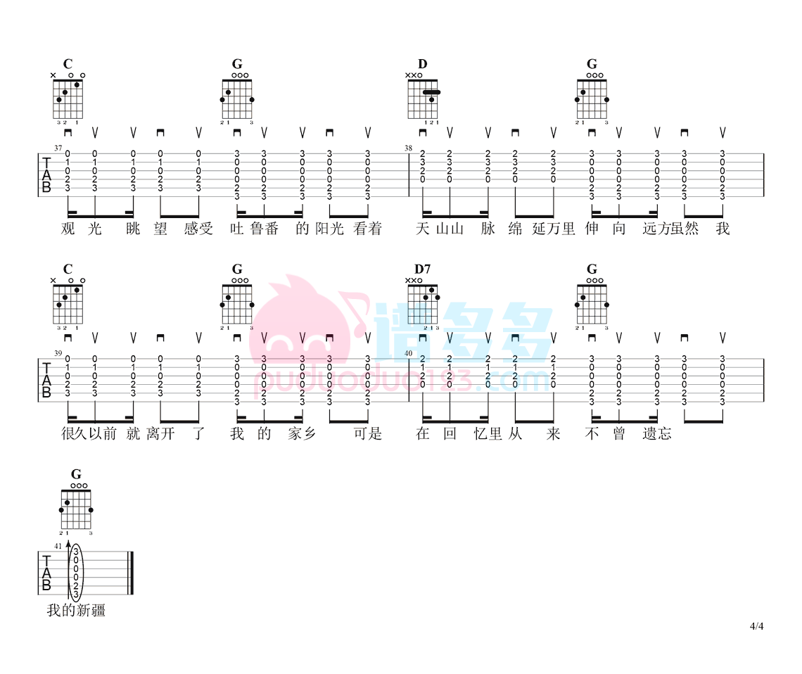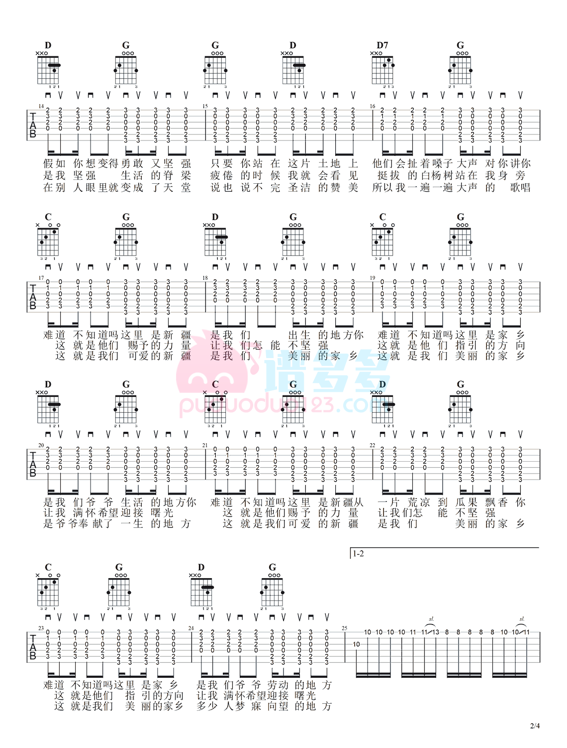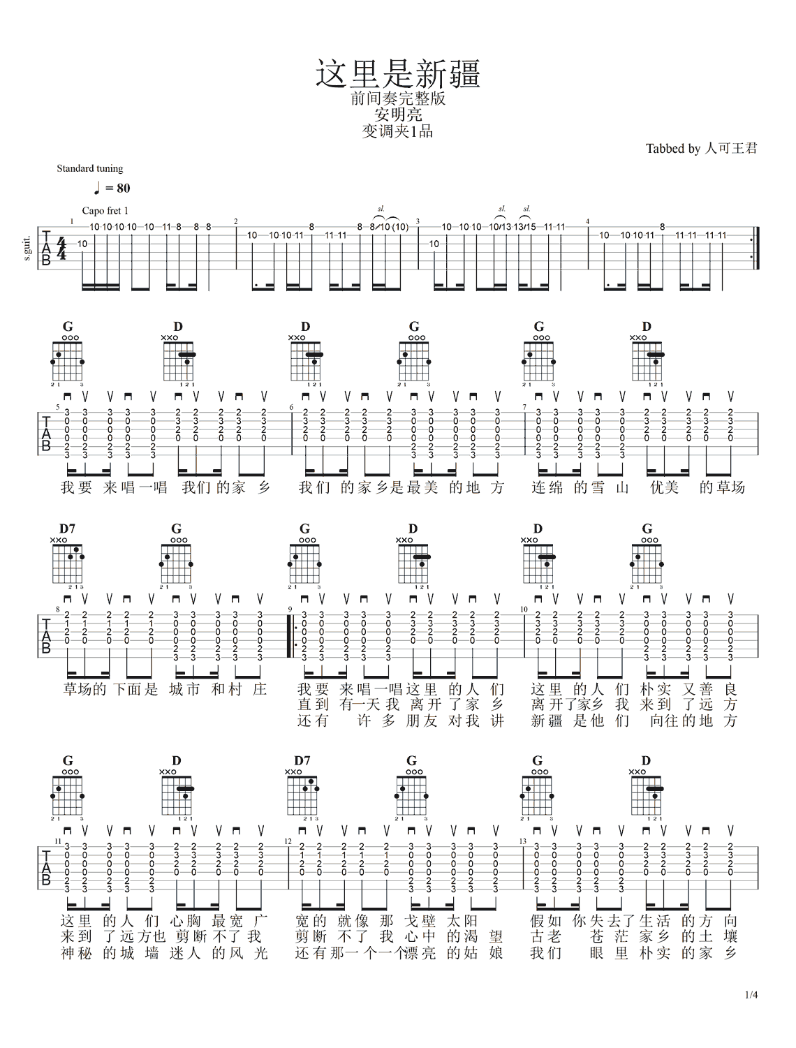 曲谱介绍: 《这里是新疆》吉他独奏谱,共有5张高清图谱。