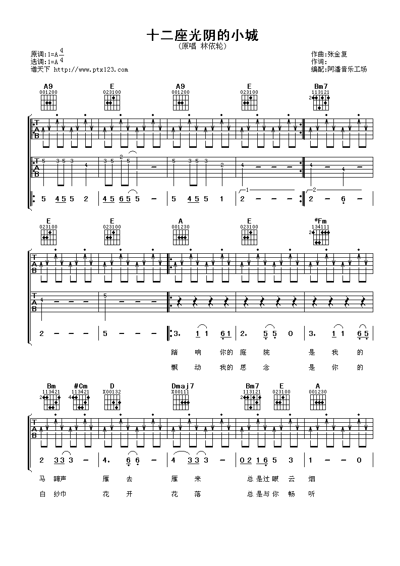 十二座光阴的小城吉他谱 - 林依轮 - A调吉他弹唱谱