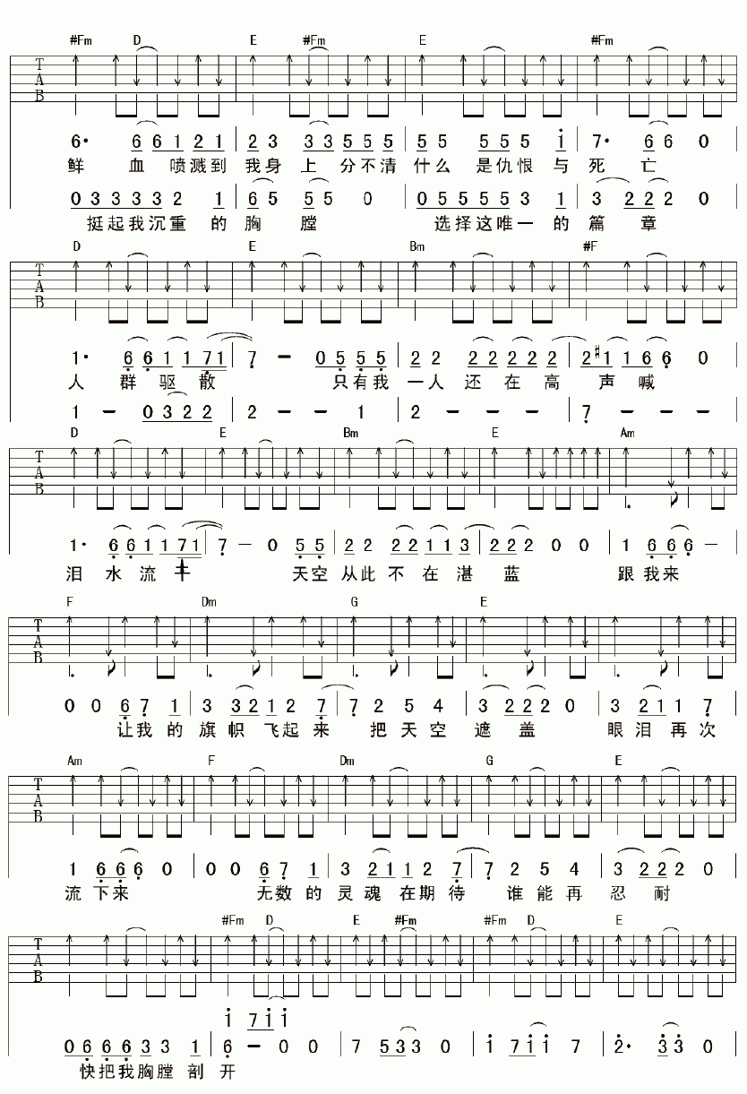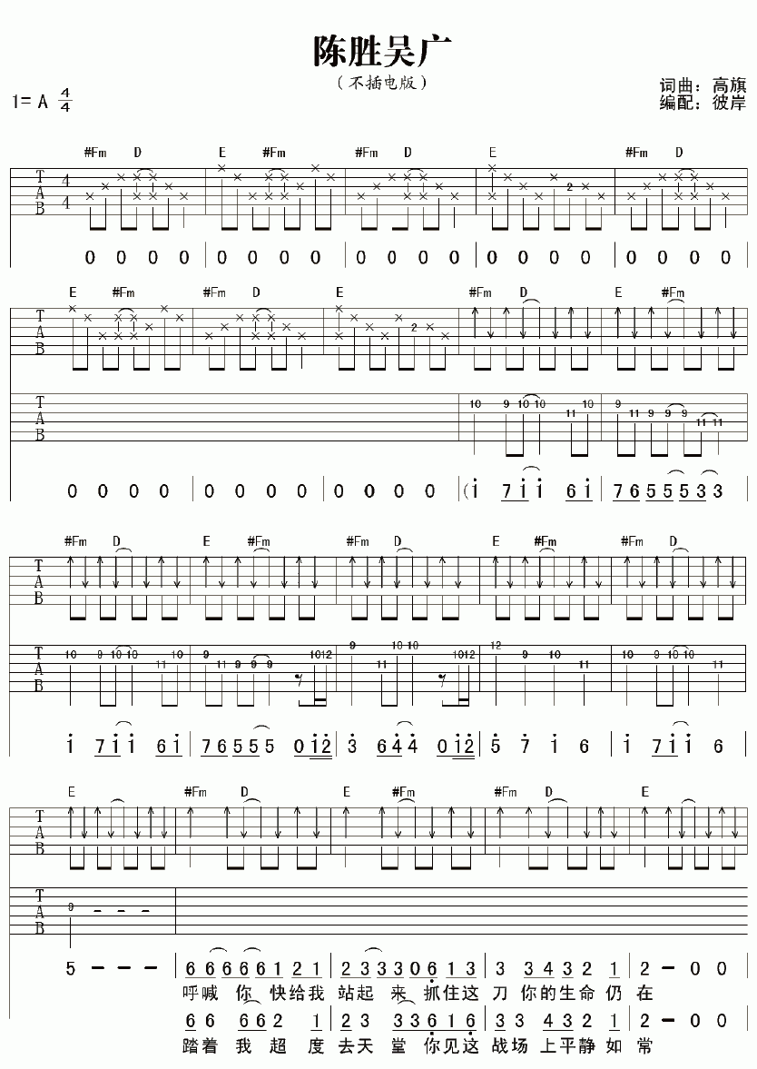 曲谱介绍: 超载乐队《陈胜吴广》吉他弹唱谱,共有4张高清图谱。