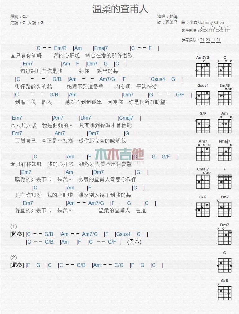 温柔的查甫人_吉他谱 - 温柔的查甫人 - 吉他弹唱谱