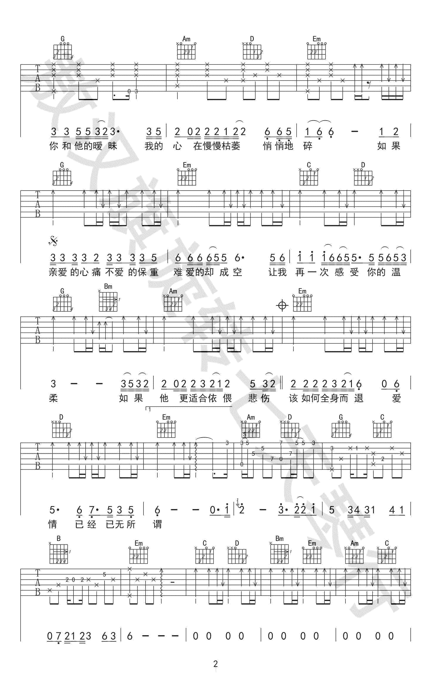 拥抱你离去吉他谱 - 张北北 - G调吉他弹唱谱