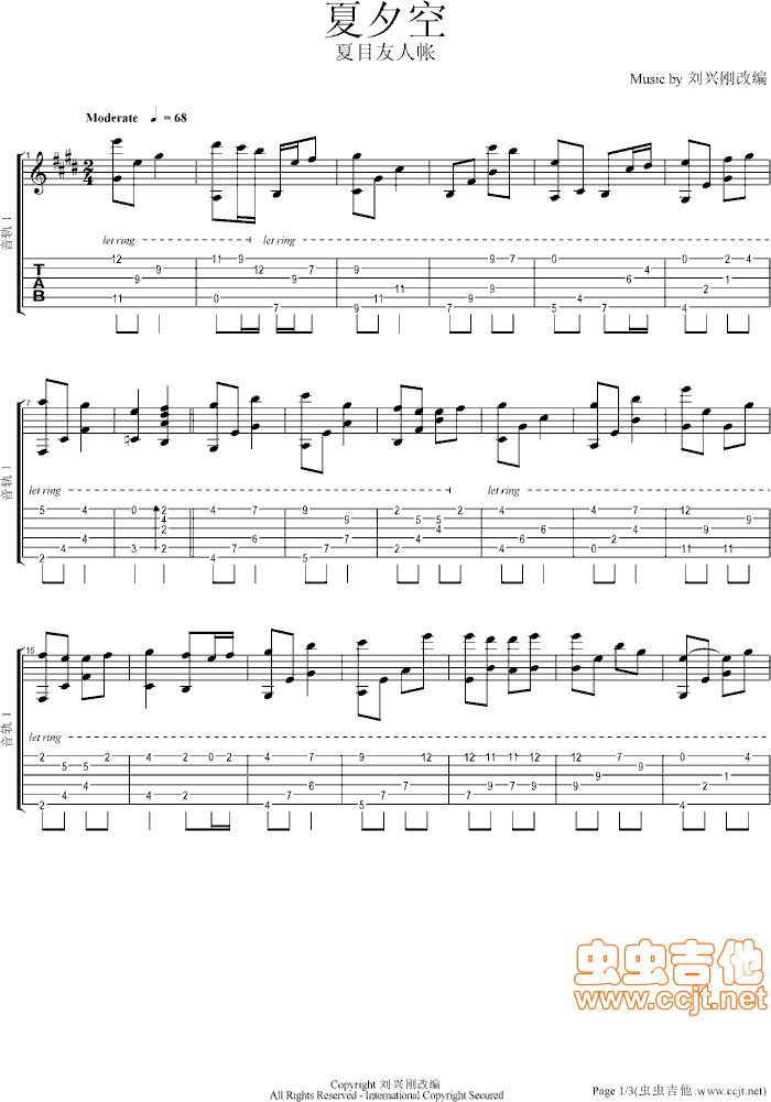 夏夕空吉他谱 - 中孝介 - 吉他独奏谱 - 原版