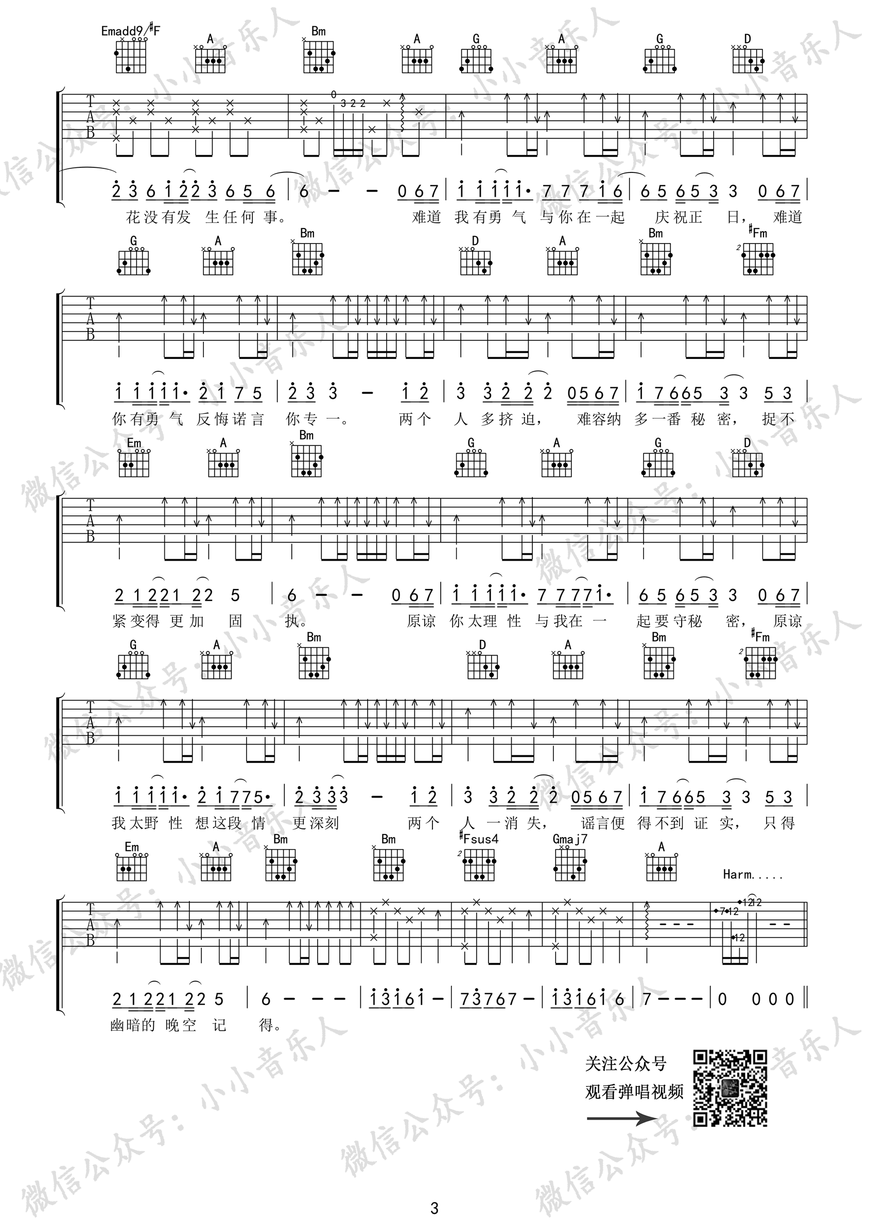 吉他弹唱D调来源:小小音乐人366 浏览2024-01-29 12:33发布图谱共3页