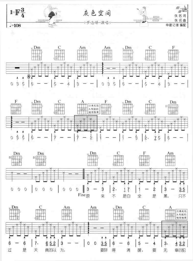 灰色空间吉他谱 - 罗志祥 - F调吉他弹唱谱