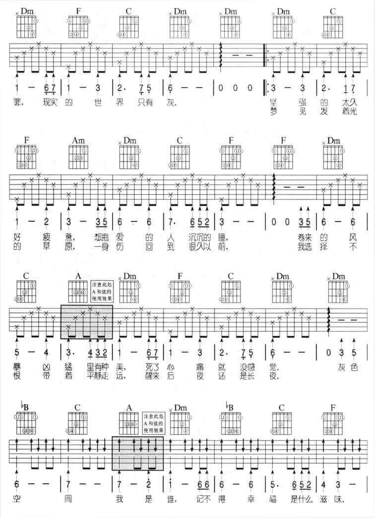 曲谱介绍: 灰色空间吉他谱采用了F调指法,这首歌曲的旋律忧郁且动听。在这首音乐作品之中我们能够从歌手沧桑忧伤的嗓音之中感受到了他向观众传递的悲伤情绪。另外,这首感动天感动地吉他谱也超级好听,小伙伴们有福啦,还不去练起来?
