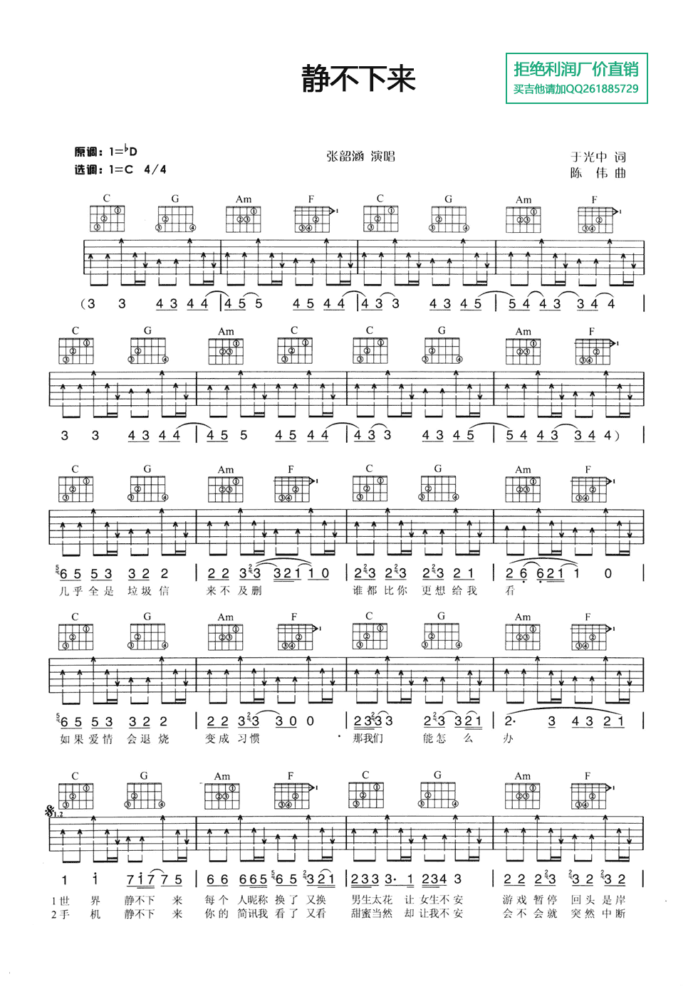 当前位置:琴谱网>吉他弹唱>静不下来
