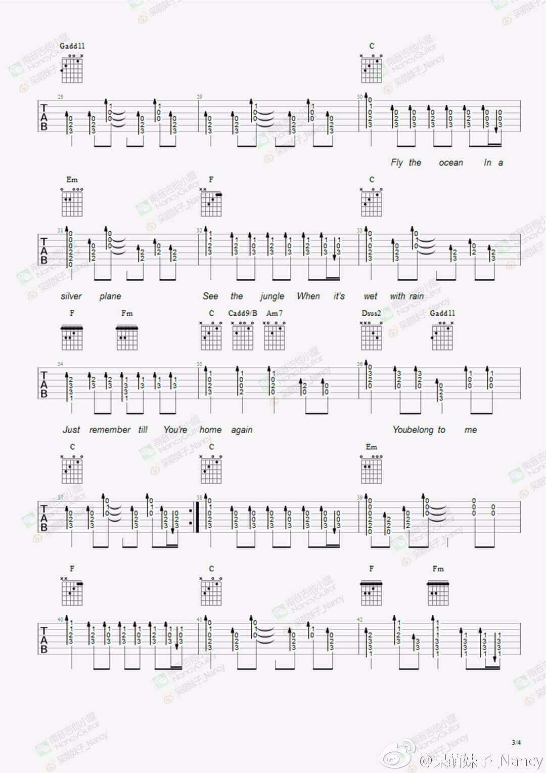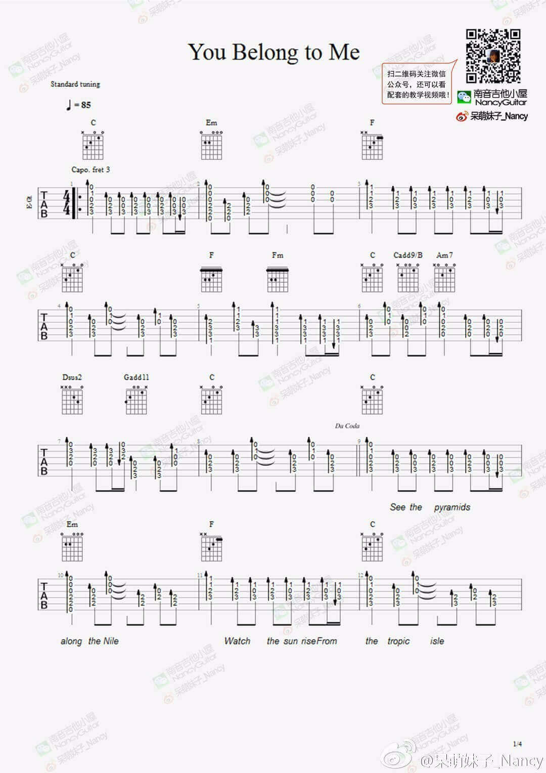 you belong to me吉他谱 - you - C调吉他弹唱谱