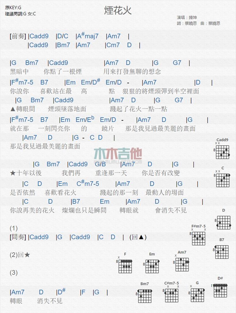烟花火_吉他谱 - 烟花火 - 吉他弹唱谱
