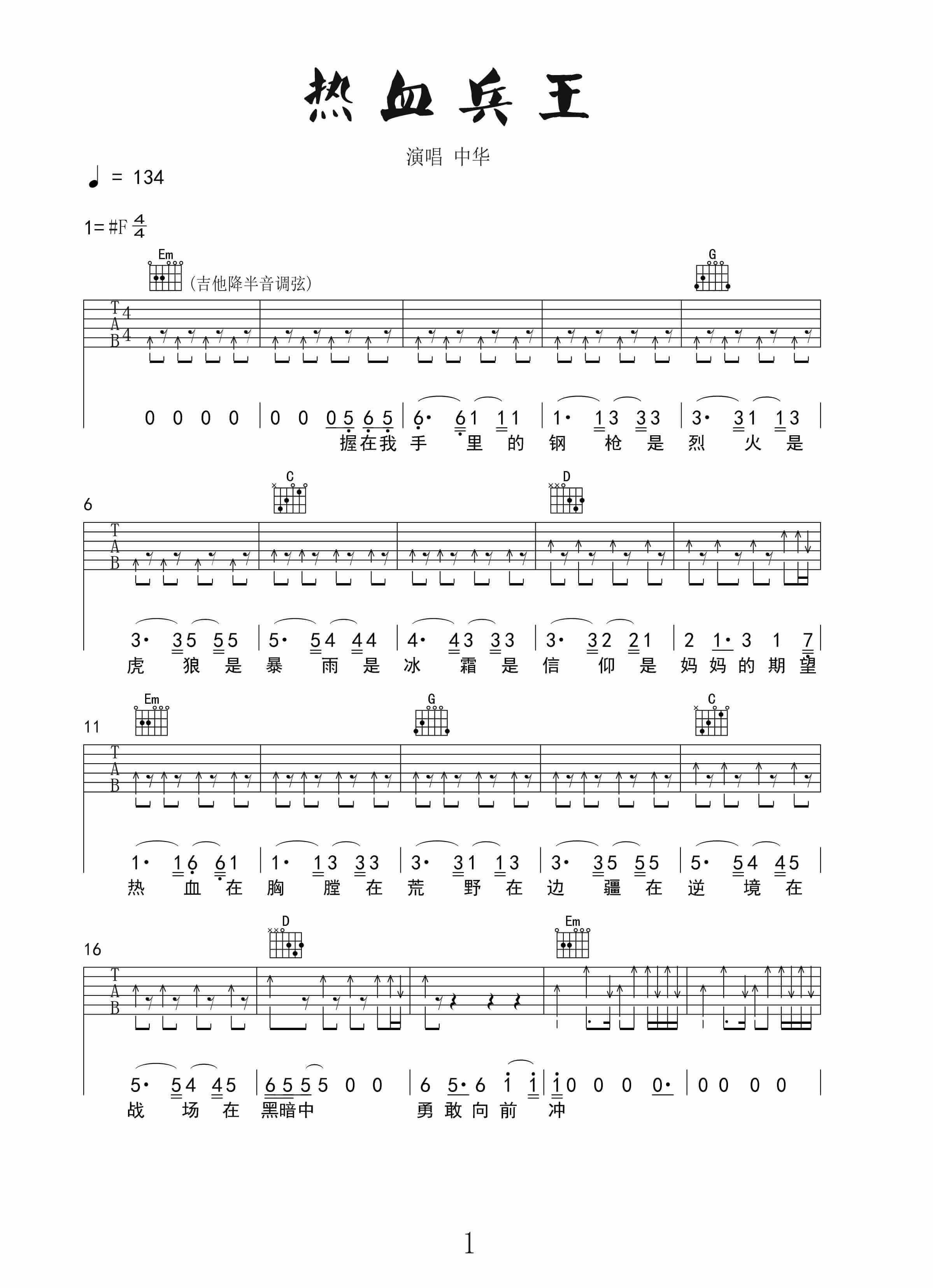 热血兵王吉他谱 - 中华 - F调吉他弹唱谱