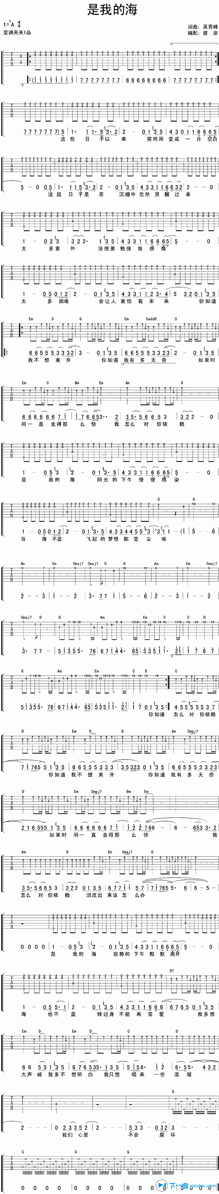 曲谱介绍: 是我的海吉他谱采用了A调指法,由彼岸吉他编配完成。另外一首,狗日的青春吉他谱也很赞,小伙伴可以愉快的学习起来了。