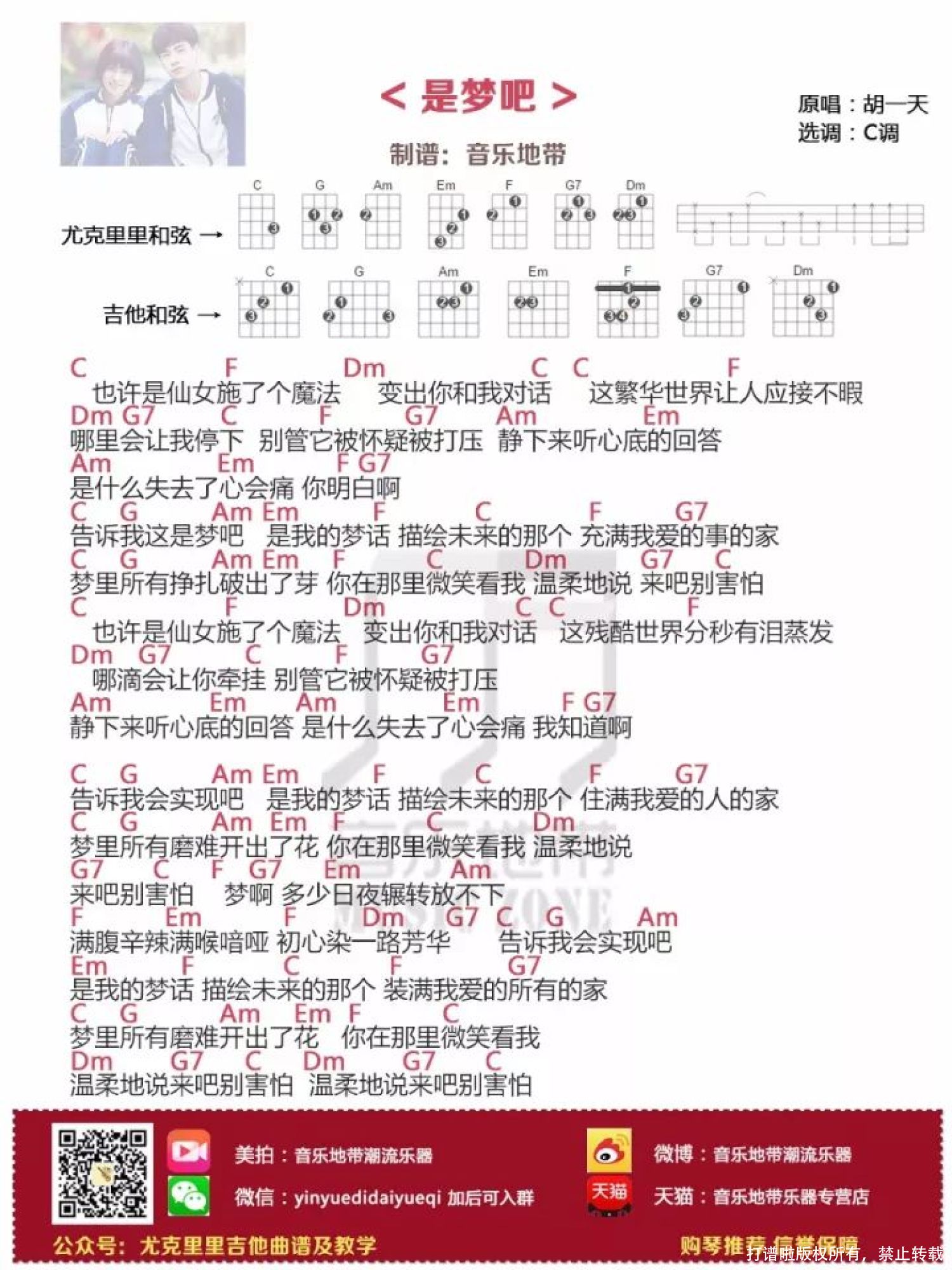 曲谱介绍: 小美好 尤克里里谱   是梦吧 尤克里里谱
