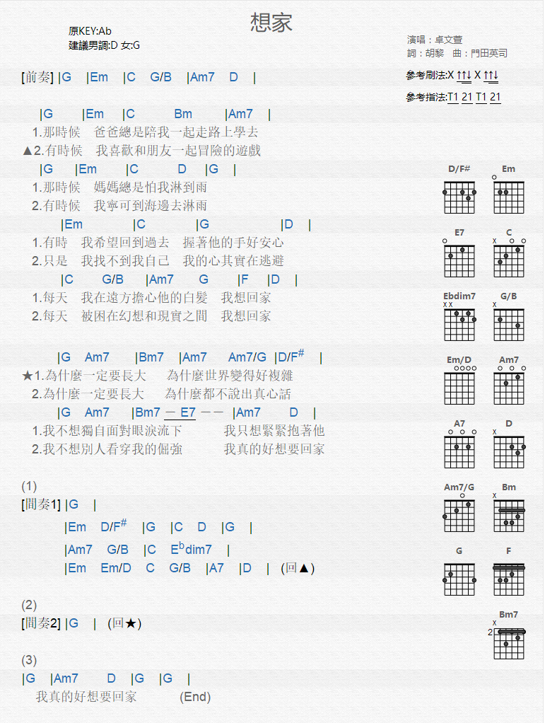 当前位置:琴谱网>吉他弹唱>想家_