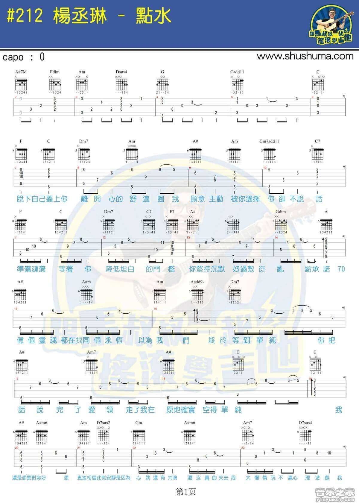 点水吉他谱 - 杨丞琳 - C调吉他弹唱谱