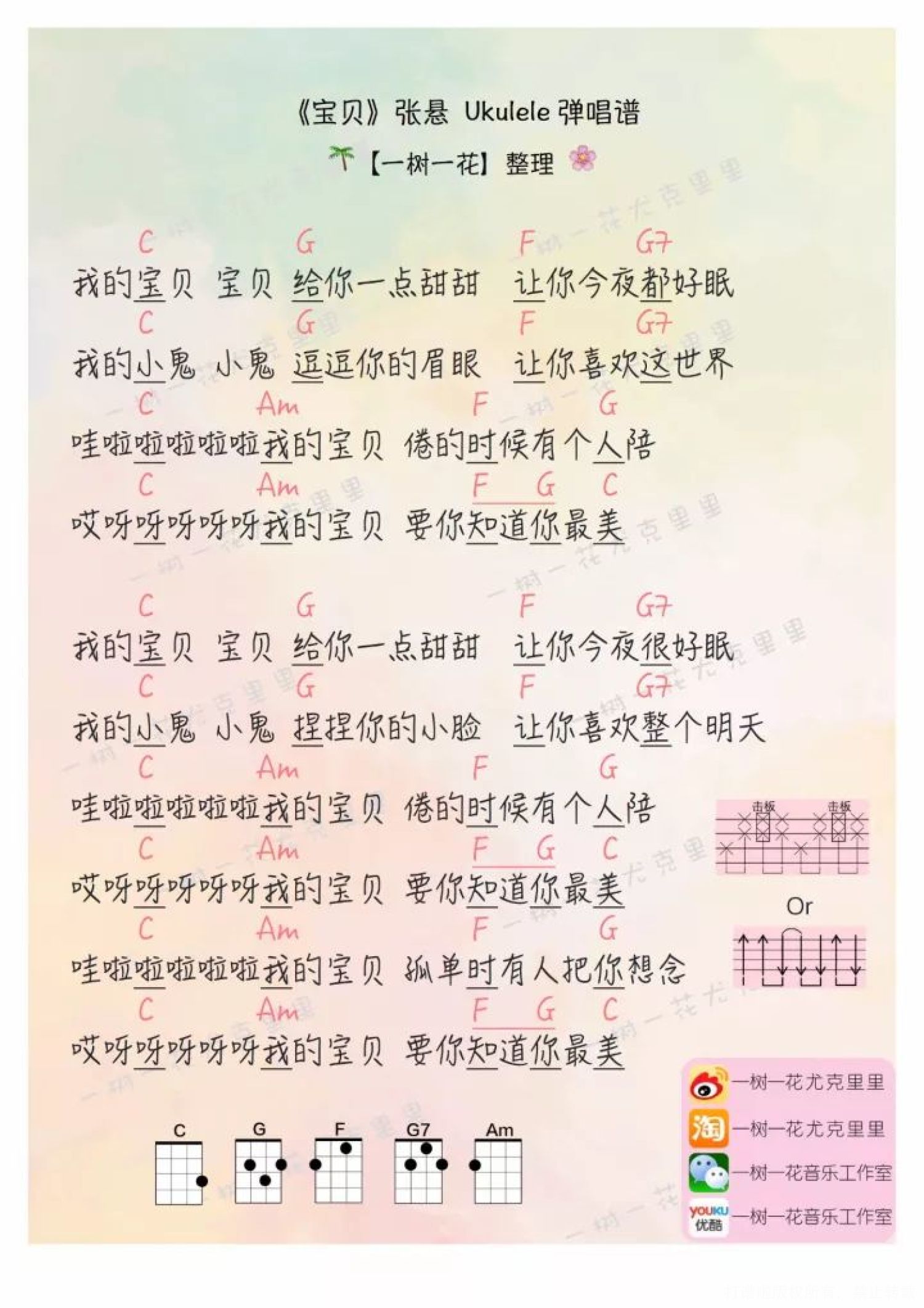 曲谱介绍: 弹唱教学   宝贝 尤克里里谱