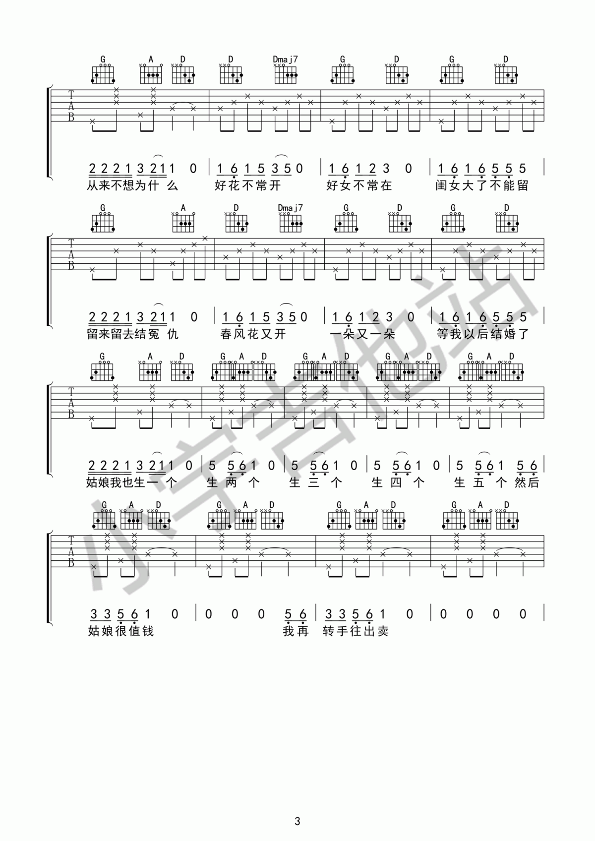 吉他弹唱D调来源:良好市民133 浏览2024-01-29 14:10发布图谱共3页