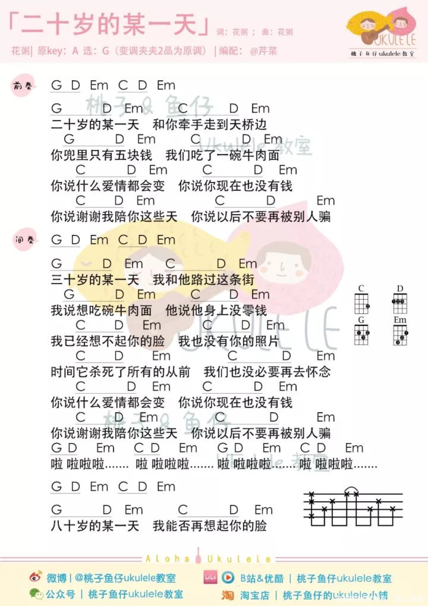 曲谱介绍: 《20岁的某一天》尤克里里弹唱谱