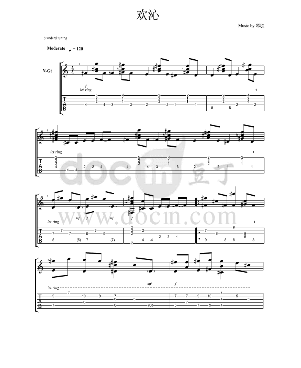 欢沁吉他谱 - 林海 - 吉他独奏谱 - 原版